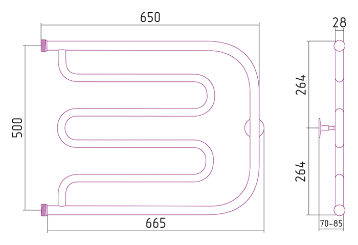 Полотенцесушитель водяной Стилье ТАНДЕМ 00011-5065 500х650