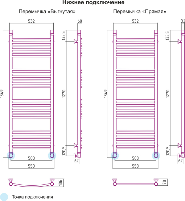 Горизонтальное подключение, см