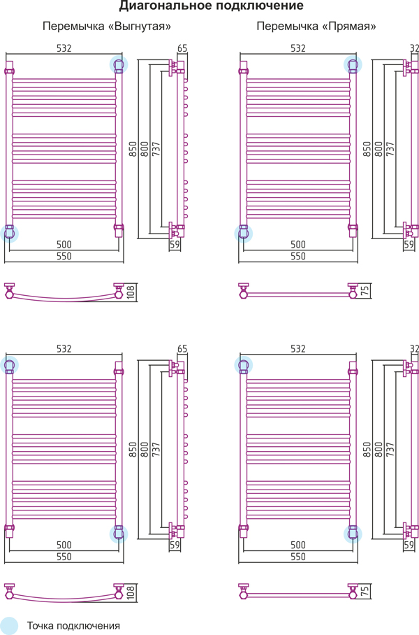 Диагональное подключение, см